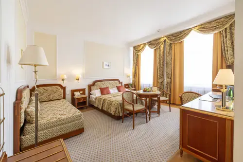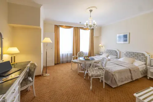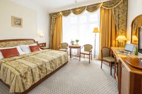 Hotel Ambassador Zlatá Husa offers 162 rooms and suites, with a total capacity of around 310 beds. The hotel also provides secure on-site garage parking for guests. In addition to comfortable accommodation, it features a full range of services including a wellness & spa centre, restaurant and lobby bar, room service, flexible room types (single, double, suites), and facilities for business events or larger group stays. With its central location on Wenceslas Square, the hotel combines convenience, comfort and comprehensive guest services — making it suitable both for leisure and business travellers.